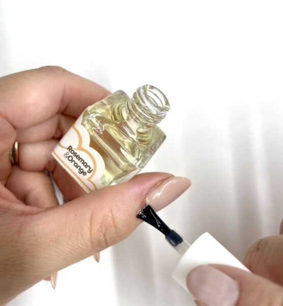 オイルを塗ったら爪や皮膚に成分が浸透するよう、指の腹でクルクルと円を描くようにしてネイルオイルをなじませます。