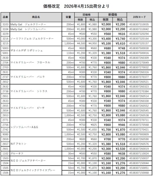 価格改定のお願い ― 2026年4月15日出荷分より